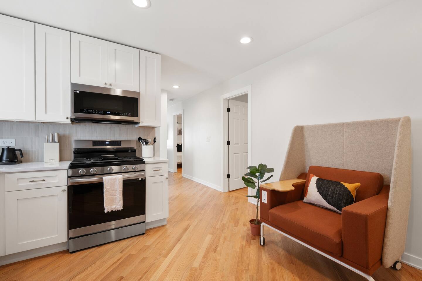 Luxury 2 bedroom and 1 bathroom top floor light filled condo -Dedicated rear parking spot for a compact vehicle -In-Unit Laundry (Award winning LG Wash Tower) -Fast Wi-Fi with Eero Mesh System -Smart TV in the living room -Nest thermostat dedicated to your unit for your comfort -Private water heater for your unit, no need to share hot water -Blackout shades in each bedroom
