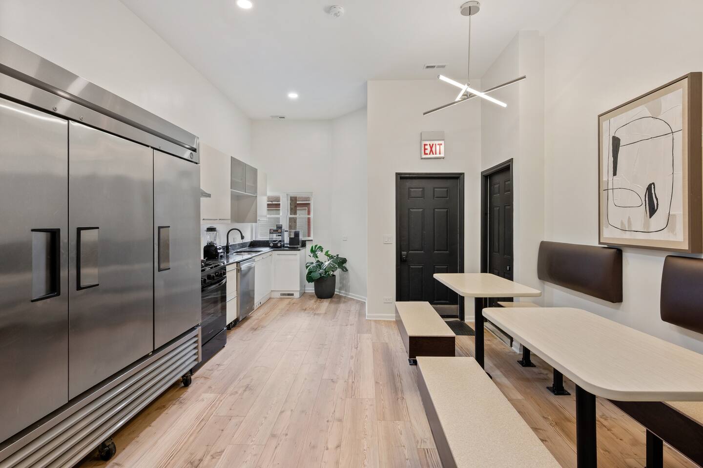 Guests will have private suites with a dedicated bathroom for their group, along with access to all shared spaces in the building. This includes the kitchen, lounges, workspace, onsite mart, coin laundry, and outdoor patio seating. Key-free entry with smart locks makes check-in simple and secure. Shared spaces create a friendly, community atmosphere, while still offering plenty of room to relax and enjoy your own privacy.