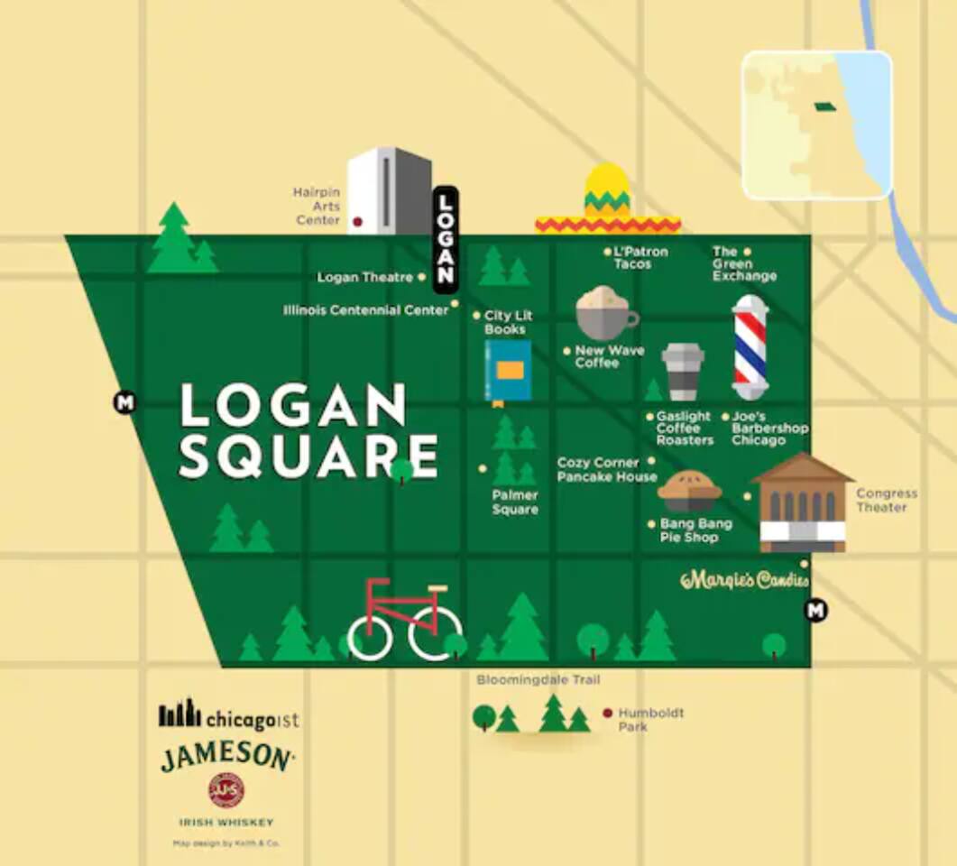 -We're in Logan Square (one of the most in-demand spots in the city!) -5 miles from the heart of downtown (The Bean) -4 miles from Wrigley, River North, North Ave. Beach, Gold Coast, etc. Within walking distance or a short Uber (10 minutes or less without traffic), to award-winning restaurants, bars, breweries, theatres, landmarks (Logan Square monument), stores, you name it!